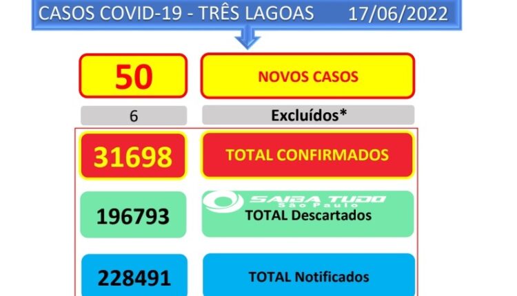 50 CASOS DE COVID NAS ÚLTIMAS 24 HORAS EM TRÊS LAGOAS