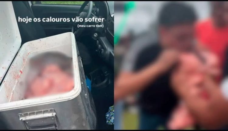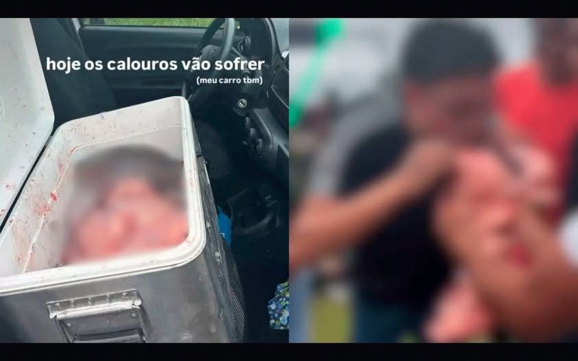 Vídeos que circulam nas redes sociais mostram uma caixa térmica contendo órgãos de animais. Nas imagens, veteranos seguram partes íntimas de uma vaca e incentivam os calouros a realizarem o ato, caracterizando uma prática vexatória e humilhante.