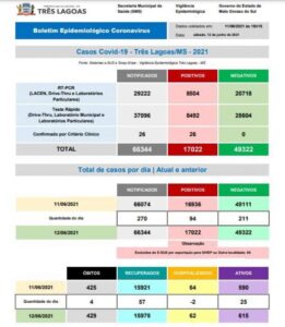 TRÊS LAGOAS (MS) – A Prefeitura de Três Lagoas, por meio do setor de Vigilância Epidemiológica da Secretaria Municipal de Saúde (SMS), divulgou o Boletim Epidemiológico COVID-19 desta sexta-feira (12).