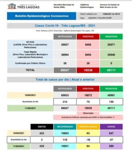 TRÊS LAGOAS (MS) – A Prefeitura de Três Lagoas, por meio do setor de Vigilância Epidemiológica da Secretaria Municipal de Saúde (SMS), divulgou o Boletim Epidemiológico COVID-19 desta sexta-feira (11).
