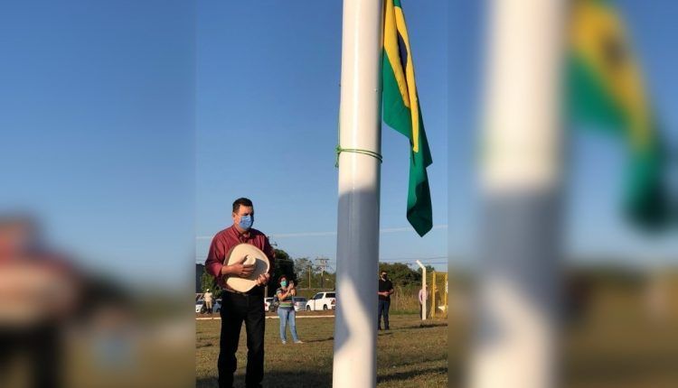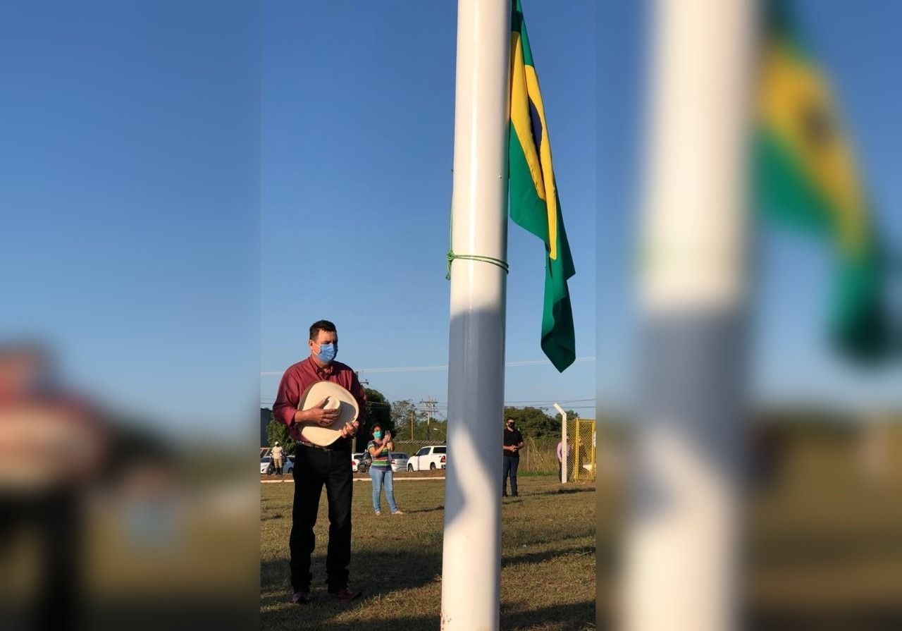 Mesmo sem festa e com poucos convidados, o ato cívico de hasteamento das bandeiras do Brasil, do Estado do Mato Grosso do Sul e de Três Lagos (MS) aconteceu pontualmente às 7h, na rotatória dos Tuiuiús, localizada na divisa da cidade com o Estado de São Paulo.